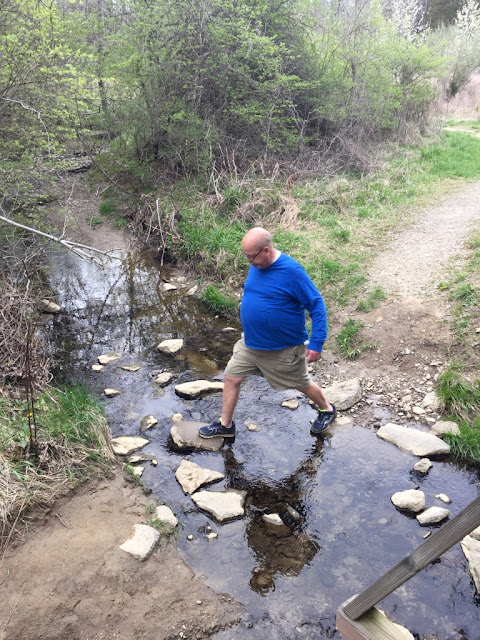 I took the high road and walked over the bridge. I'm still a little leery about crossing creeks. Mark crossed on the rocks.