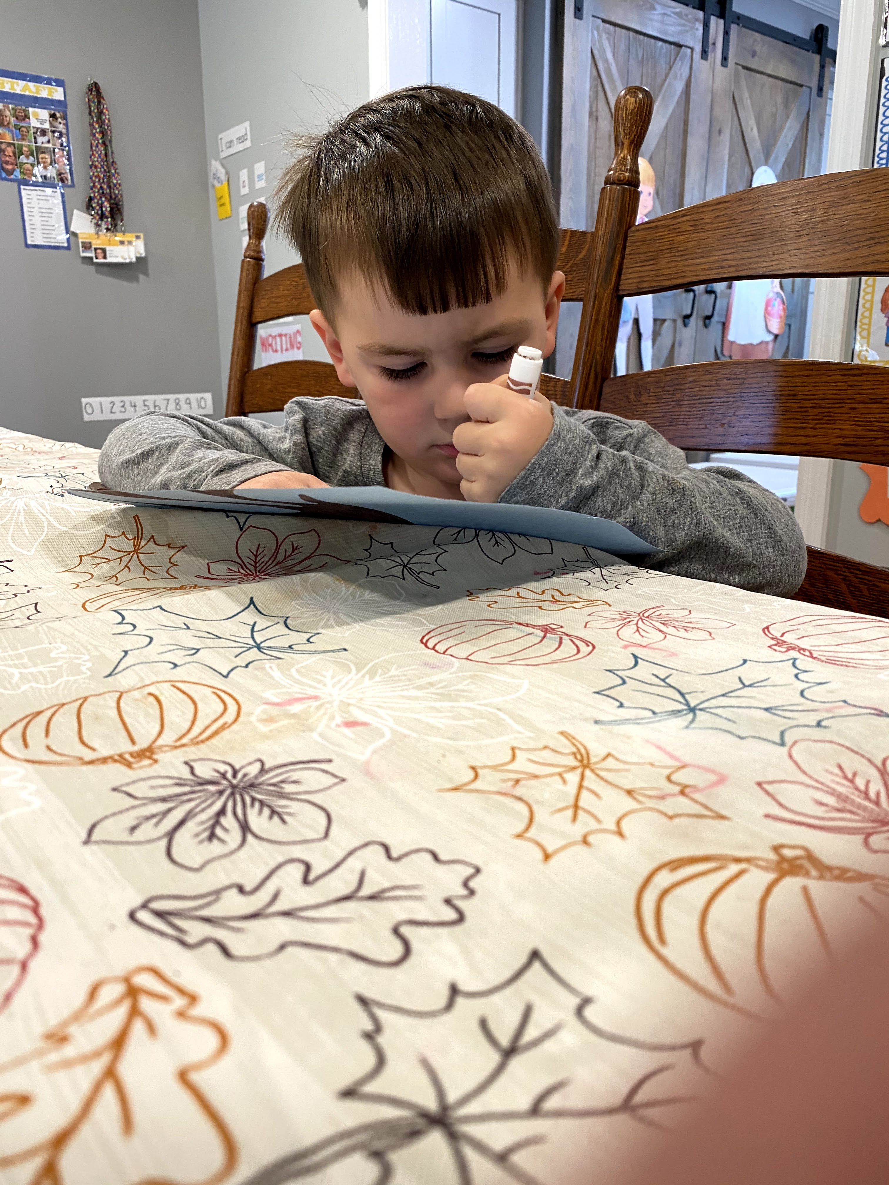 Connor recognizes and can now write his 'name' with a capital C.
