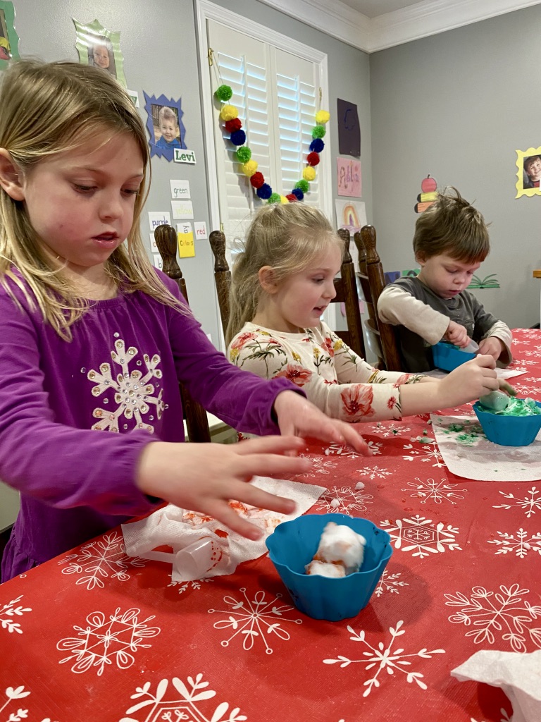 I wasn't sure if everyone had their snow clothes so we brought the snow inside.