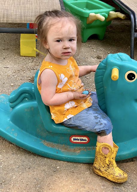 Bailey walked around the yard holding Jase's hand for the longest time. Then Avery tried his best to talk her into holding his hand but she wouldn't have any of it.