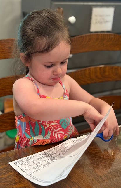 Gabe, a preschool graduate, came to visit for the day.  He loves a good worksheet.
